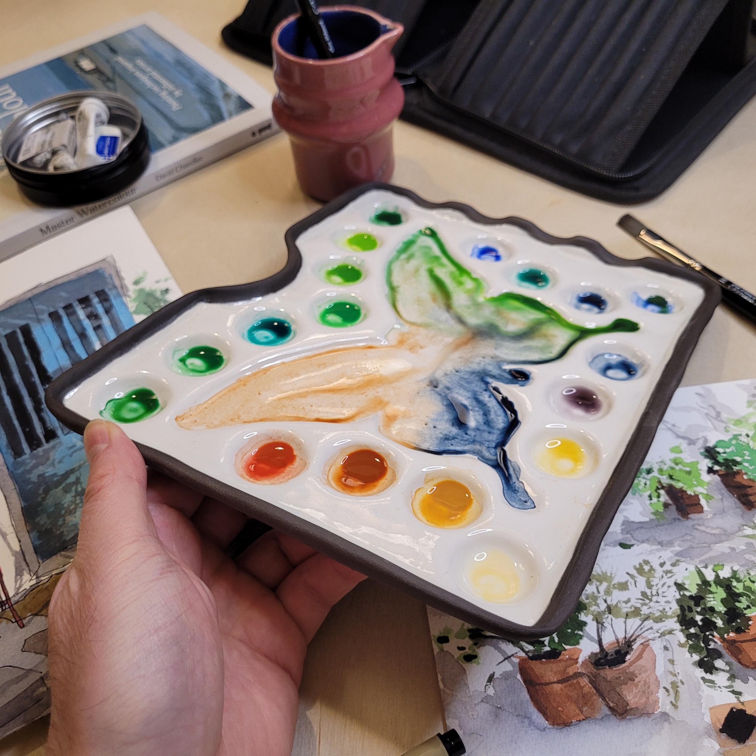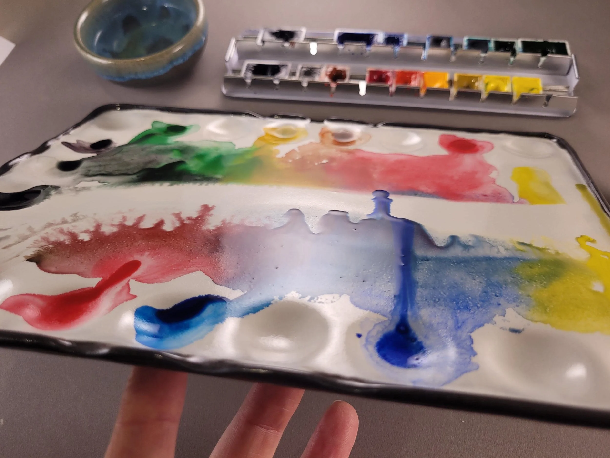 An example of the primary product - modular and stackable handmade pastel boxes show in use by a customer